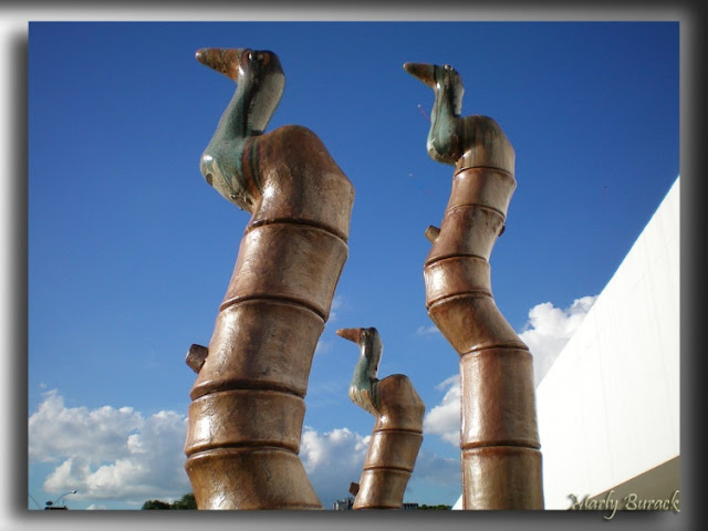 Praça concebida por Burle Max com enorme escultura de Brennand.