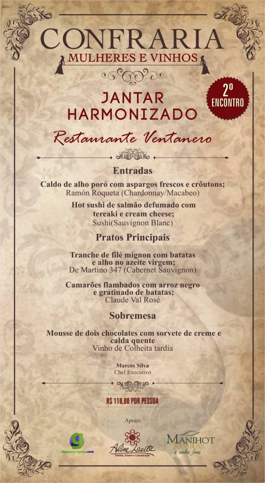 Jantar Harmonizado da Confraria Mulheres & Vinhos.